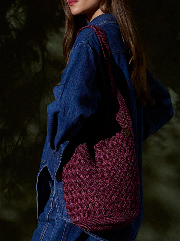 The Sak 120 Hobo - Hand Crochet - Black Cherry Cozy Weave