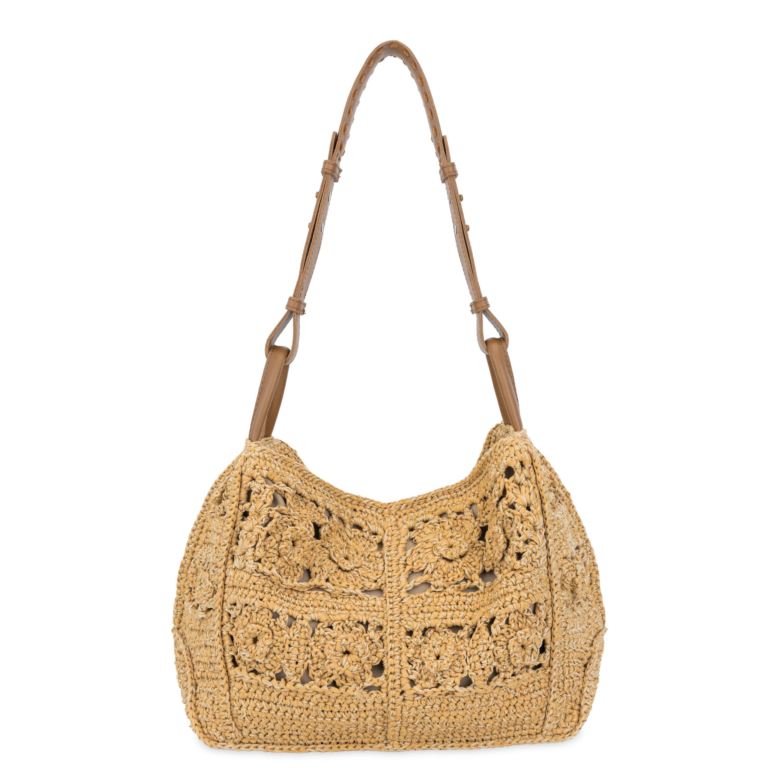 The Sak Los Feliz Hobo - Hand Crochet - Natural Tonal Flower