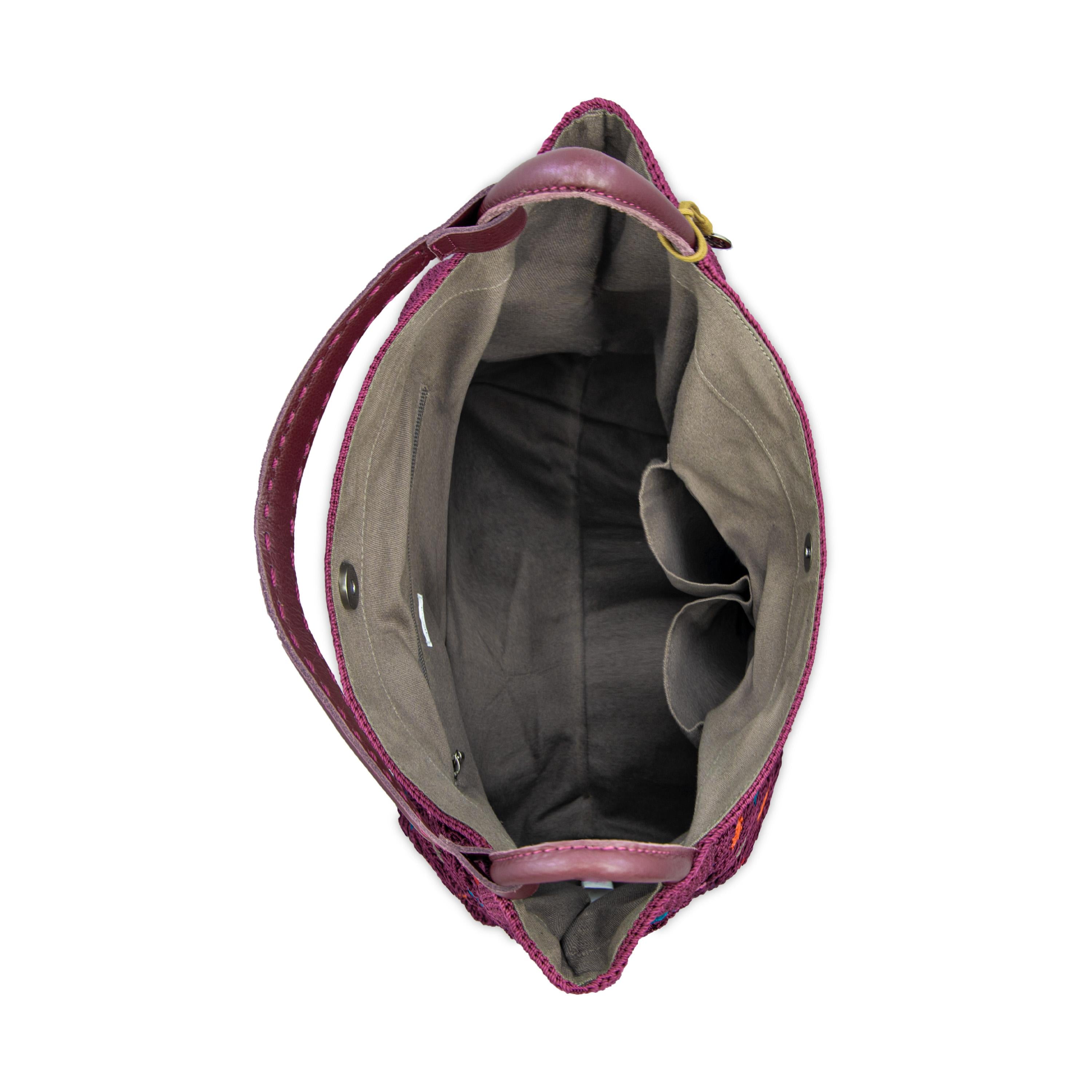 • Interior contains a back wall crochet pocket and two front wall crochet pockets