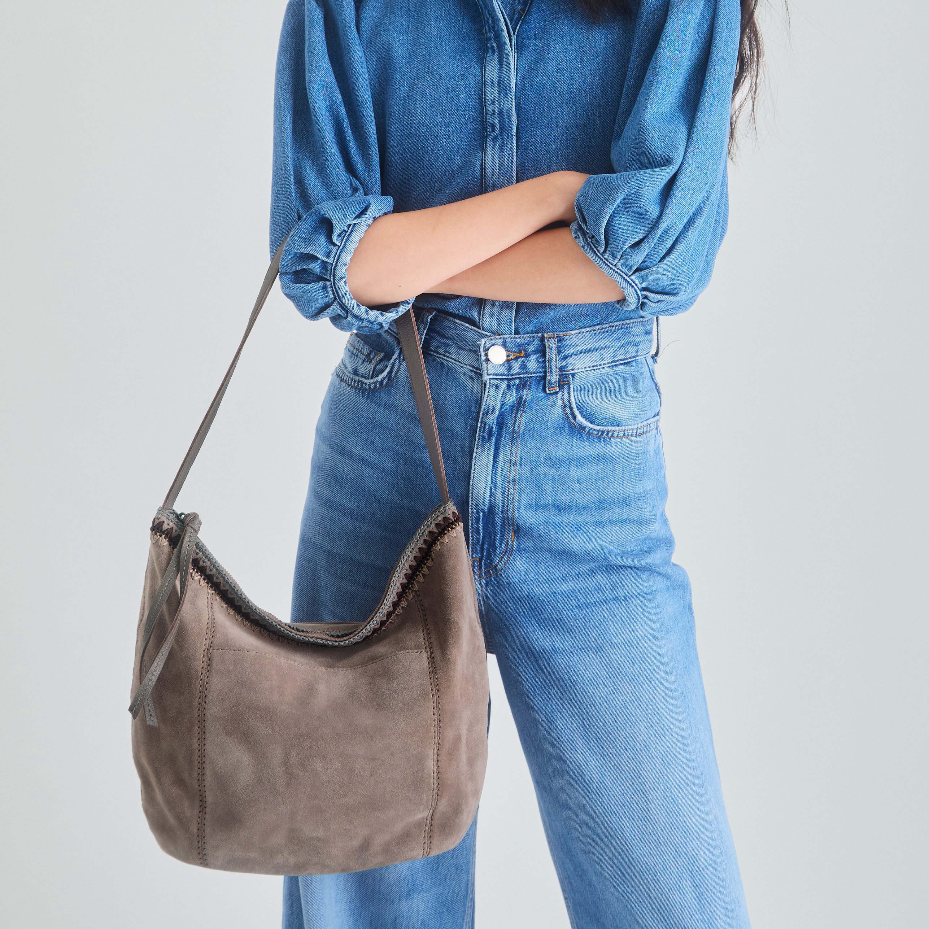 Sequoia Hobo - Leather - Mushroom Suede Blanket Stitch